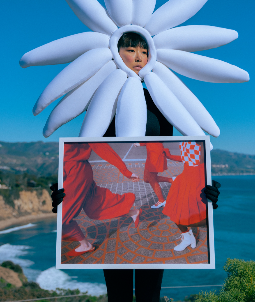 Model is holding a 24" x 20" framed print.